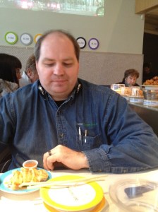 I usually wind up taking pictures of Michael while we’re at dinner. My grandmother is probably looking down from heaven, appalled that I’m tweeting, taking pictures, and looking things up on the internet while we’re at the dinner table. That’s right, I’ve turned into one of THOSE people.