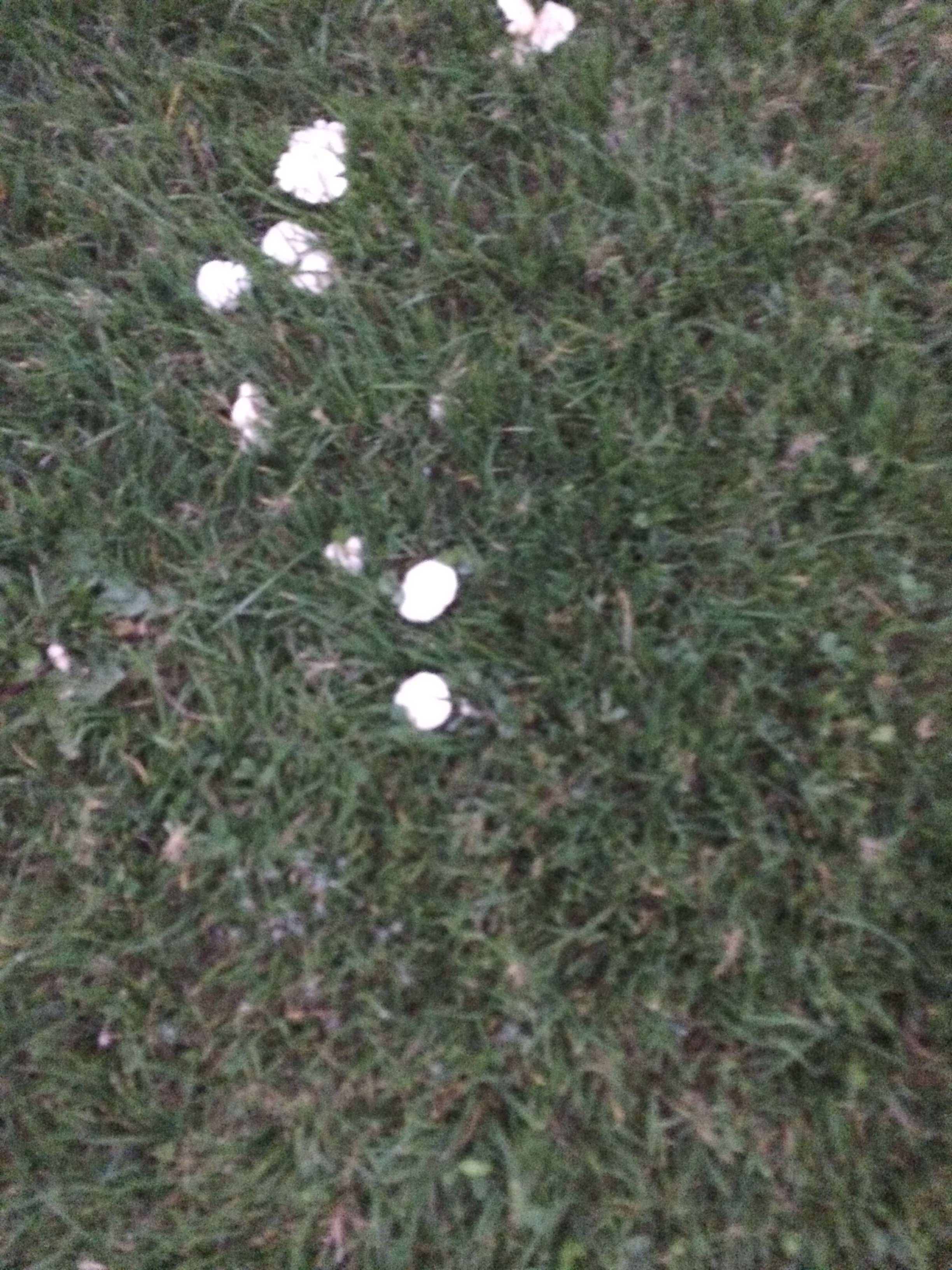 When I got home, Michael came out to help me unload, and he pointed out something I had missed: a fairy ring! Toadstools coming up in a large ring on the lawn, right next to the car. So I had to take a picture…
