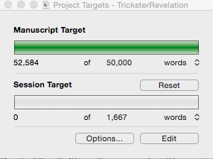 - Complete the loose ends on the two novels in edit so I can completely ignore them for a month without worrying. I got the things that were nagging at me most to a state where I wouldn’t be distracted wanting to fix a few more things during November.