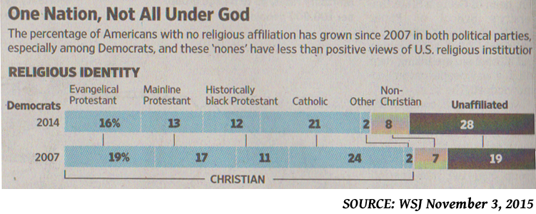 BettyBowers_2015-Nov-03 Published on November 24, 2015 in Oppressed Oppressors, part 4Full resolution (751 × 300) Next → The percentage of Americans with no religious affiliation has grown since 2007 in both political parties. © Wall Street Journal (Click to embiggen) The percentage of Americans with no religious affiliation has grown since 2007 in both political parties. Share this: Click to share on X (Opens in new window) X Click to share on Tumblr (Opens in new window) Tumblr Click to share on Pinterest (Opens in new window) Pinterest Click to share on Pocket (Opens in new window) Pocket More Click to share on Facebook (Opens in new window) Facebook Click to email a link to a friend (Opens in new window) Email Click to share on Reddit (Opens in new window) Reddit Click to share on Telegram (Opens in new window) Telegram Like Loading...