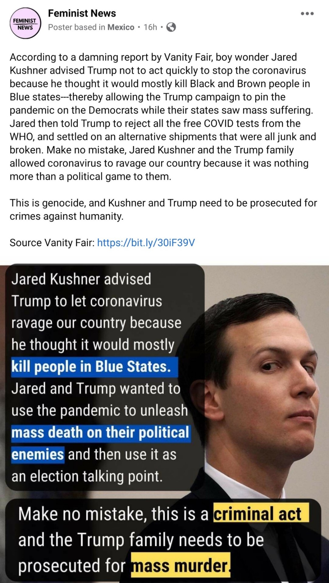 Donald Trump, Jared Kushner Guilty of Mass Murder of Americans.