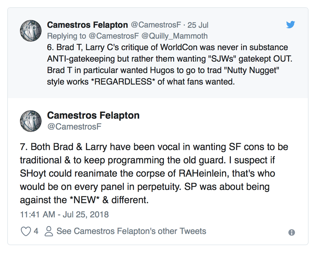 - “George R.R. Martin Can Fuck Off Into the Sun, or: The 2020 Hugo Awards Ceremony (Rageblog Edition)”, Natalie Luhrs (Pretty Terrible 8/20)