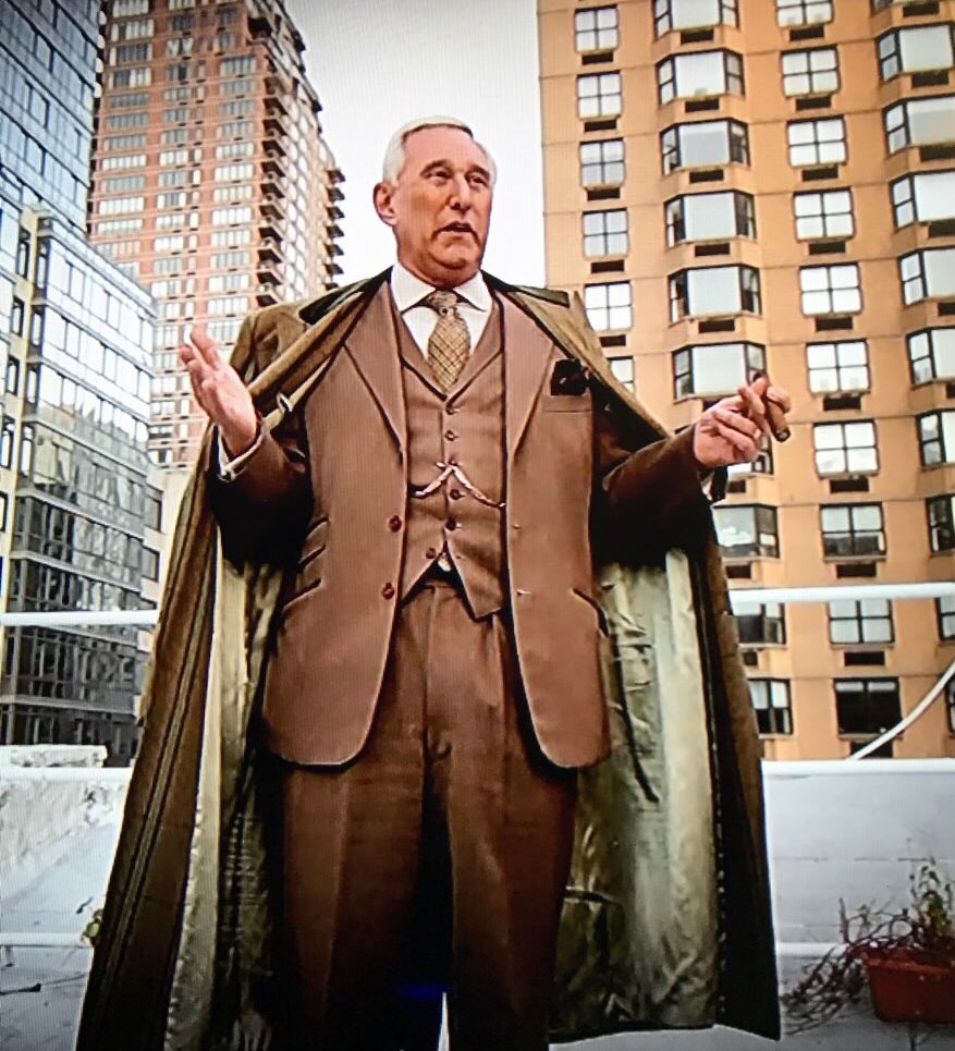 Seriously, none of these photos are fake. This is how he dresses!Less pertinent to any actual crimes, but the source of many memes out there comparing Stone to the character of Judge Doom, the villain in the movie Who Framed Roger Rabbit? Look at these pictures! This is how the guy dresses when he is going to places. He looks like he’s cosplaying a a villain from the campy 1960s Batman TV show, for goodness sake! There are more, so many, many more! And I know it is silly and superficial to focus on such a thing, but there is more to his cartoon-ish personality and life choices.