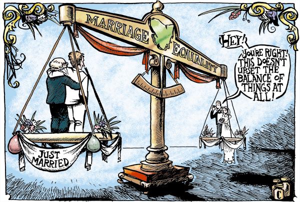 One side works so that everyone should have an opportunity to do something – get married, be nominated for an award, pee in whatever bathroom, be on television.