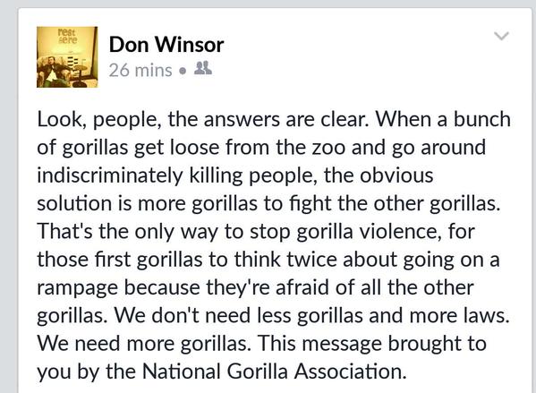 The last one is difficult to tackle because one particular lobbying group has managed to delude a sizeable fraction of the public into believing that the only thing any of us mean when we say we want to deal with that is a total ban on all guns. Yesterday I made an analogy between the way we used to say that drunk driving was just as impossible to do anything about as gun violence, and how we have since proven that assertion false. A big part of the change that happened in the drunk driving debate was that we allowed a national bureau to compile nation wide statistics on alcohol-related car accidents. So the very minimum that we should do (and there is no excuse not to) is to lift the legal ban on studying gun violence as a public health issue. Studying drunk driving led people to think of options that had never even been discussed before; options that worked. Let us study it, at the very least!