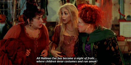 In case you aren’t familiar: the movie begins on October 31, 1693 in Salem, Massachusetts, where the notorious (and elderly) Sanderson sisters, widely believed to be witches, have lured a young girl into their cottage. They brew a magic potion which they force the child to drink, and proceed to leech her life away, making themselves young again.