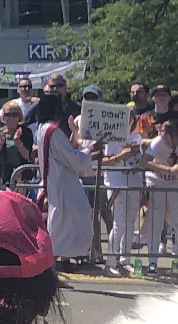 This year, we were much closer to the end, and it turns out that when the haters get to that point, they leave the route and assemble near the places where police have set up to maintain roadblocks and such. And they keep spouting their hate over megaphones for a long, long time. And have all their hateful signs.