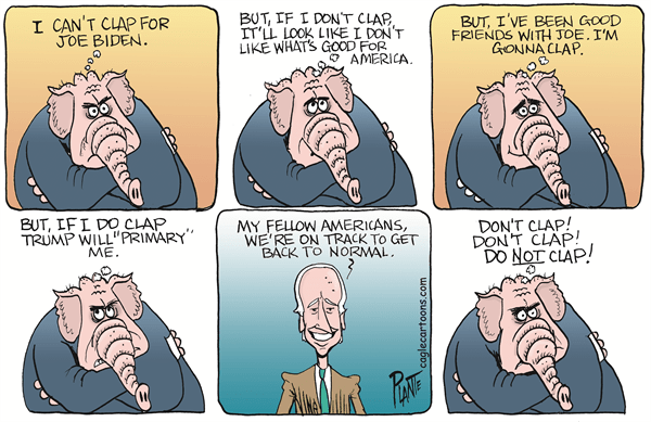 The fact that it didn’t happen by a particular date in February has absolutely no legal meaning, at all. I don’t know what plans, if any, are being discussed about a possible speech, but it seems to me unlikely we would have a typical Presidential Address to a Joint Session before next year. Because even though a whole lot of government officials have received at least one dose of Covid vaccine, it just does not seem like a good idea to cram the entire House, Senate, Supreme Court, most of the Cabinet, and a host of the usual family and dignitaries into a single room while we’re still in the middle of a deadly pandemic.