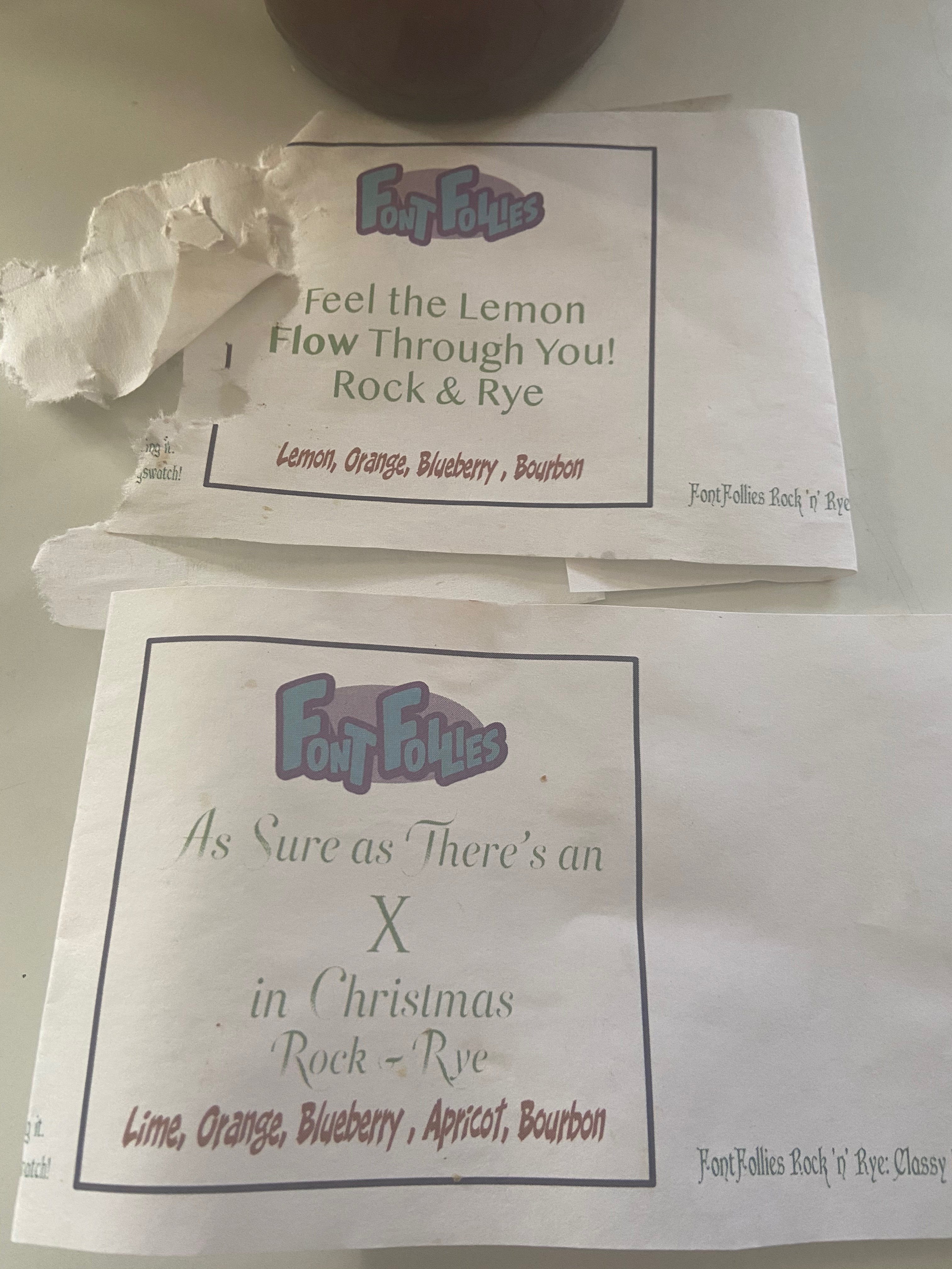 Last year I ended up making three batches, plus I had a lot of the 2017 favorite, “Farewell to Ballard” leftover. The three batches I made last year wound up being labeled “You’ll Get a KICK Out of Me,” “Feel the Lemon Flow Through You,” and “As Sure as There’s an X in Christmas!” Two of those are song lyrics, and one is a riff on a line from Star Wars.