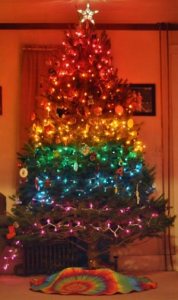 Of course, many years later Ray and I did trees all in a fairly simple color scheme… but even then there was a bit of chaos, because either of us could pick any “favorites” to go on the tree no matter what the color scheme was. Just as this year’s tree at our house has mostly purple and pink ornaments, but some of the traditional ones I put on every year7, and then just about anything I could justify as being gay.