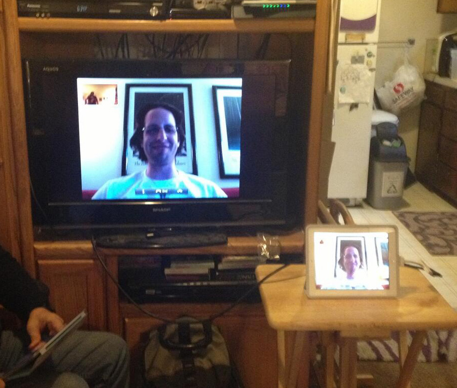 We had an editorial board meeting last night, and it being busy, crazy summertime, we almost didn’t have quorum. Fortunately, Jared was able to join us via FaceTime. We’ve done it a couple of times before, propping up my iPad so the person could see most of us. Chuck thought we should do it on the big screen, and I almost never hook the iPad up to the TV, so we did.