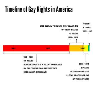 Some people, like the co-worker in my opening anecdote, simply aren’t aware of how recent any legal or societal acceptance has been (and are also frequently clueless about how much still exists). In some cases, that lack of awareness are exacerbated by the histrionics that some bigots have gone into every single time we made any progress at all. It’s easy to think that because the bigots were screaming about us destroying marriage for two decades before we actually started getting that right to marry, that we’ve had the right longer. And a lot of people still don’t realize that in 28 states it is completely legal for an employer to fire someone simply because they suspect they might be gay.