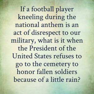“They died with their face to the foe and that pathetic inadequate @realDonaldTrump couldn’t even defy the weather to pay his respects to The Fallen #hesnotfittorepresenthisgreatcountry.”