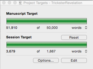 The book isn’t finished, but it is significantly closer to it, and two really big plot problems that had bee holding me up for a really long time were sorted out. Sometimes having a deadline makes my subconcious spit out an answer, you know?