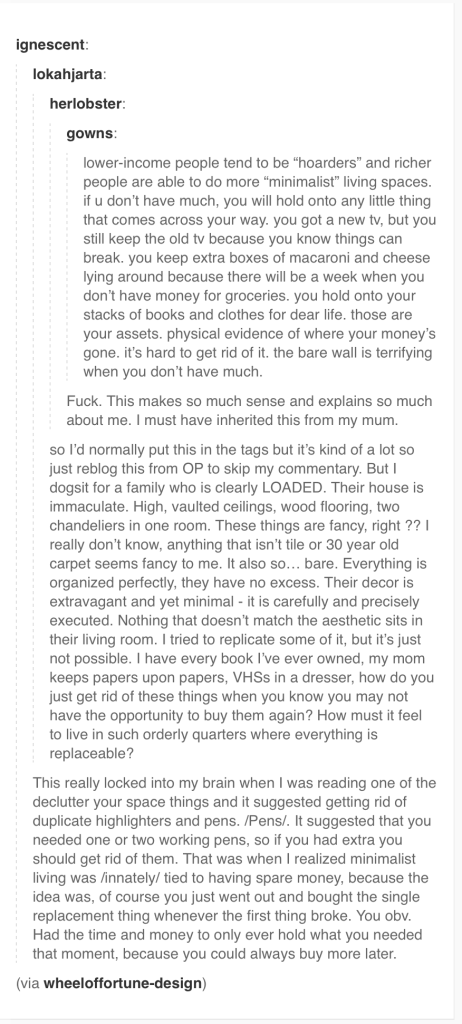 Some possession resist the ruthlessness. For instance, I have five bone china teacups that I inherited from my late first husband. They aren’t five perfectly matching teacups. They have exactly the same pattern of flowers printed on the outside one one side, and on the inside on the other side, and they all have gold rims. But three of them have tiny round handles, and five have slightly less tiny triangular handles.