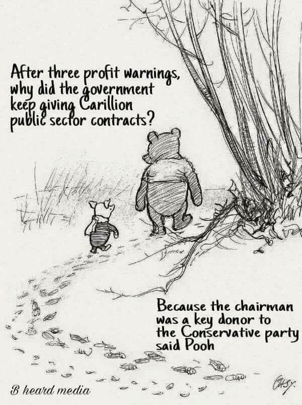 UK government kept awarding public sector contracts to Carillion despite fears about its future, minister admits and UK government officials set up Carillion collapse task force to support companies and workers. So there’s a lot of bad to fight against…
