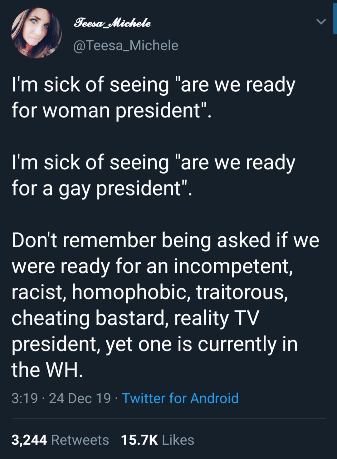![“I'm sick of seeing 'are [we] ready for a woman president.' I'm sick of seeing 'are we ready for a gay president.' Don't remember being asked if we were ready for an incompetent, racist, homophobic, traitorous, cheating bastard, reality TV president, yet one is currently in the [White House].”](https://fontfolly.net/wp-content/uploads/2020/01/tumblr_63d9c58be8141d6228b2940852306800_5ddb9c8f_1280.jpg?w=604&h=820)