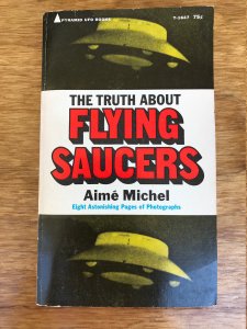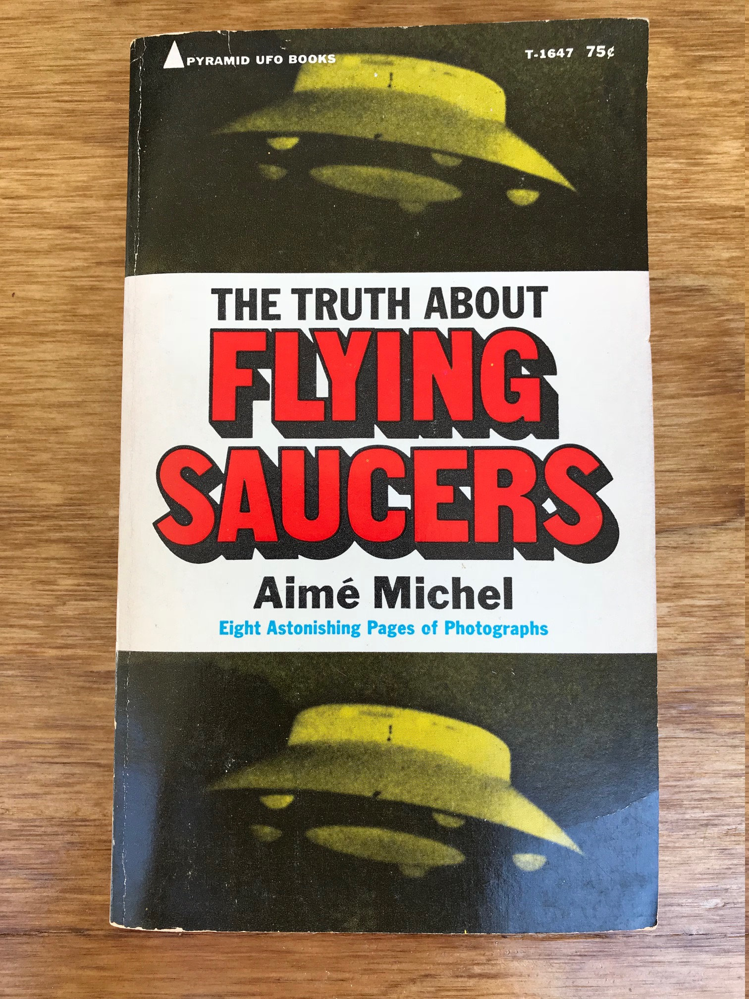 During my late elementary and middle school years, because of my interest in science fiction, lots of people who weren’t very versed in the science part of sf always assumed that I believed that UFO sightings were always proof of aliens buzzing the planet. And just as more than one adult in my life felt compelled to loan me a copy of Chariots of the Gods—other books about flying saucers, alien abductions, and the like would be handed off to me when it would turn up in a pile of used books and the like. Including, yes, the one pictured above.