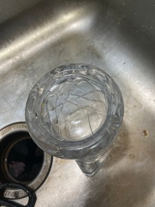 Enormous cracks was appearing all around my faux cut crystal cocktail mixing pitcher. I dumped out the ice and set the pitch in the sink, half expecting it to shatter any moment.