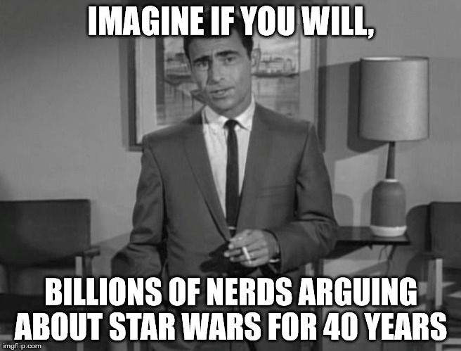 These other folks, who whine and rage about the new movies, I just assumed they were closer to the median age of the typical internet user. Their first exposure to Star Wars had been to see it on a TV at home, possibly when they were too young to remember the first time. It was just something that was always there. Whereas I saw it as a great movie that changed the way the genre was perceived as well as creating a seismic shift in all of pop culture, to them it had always been there. And they had been too young to understand that the word “empire” was inherently political, just as the phrase “rebel spy and a traitor” was also inherently political.