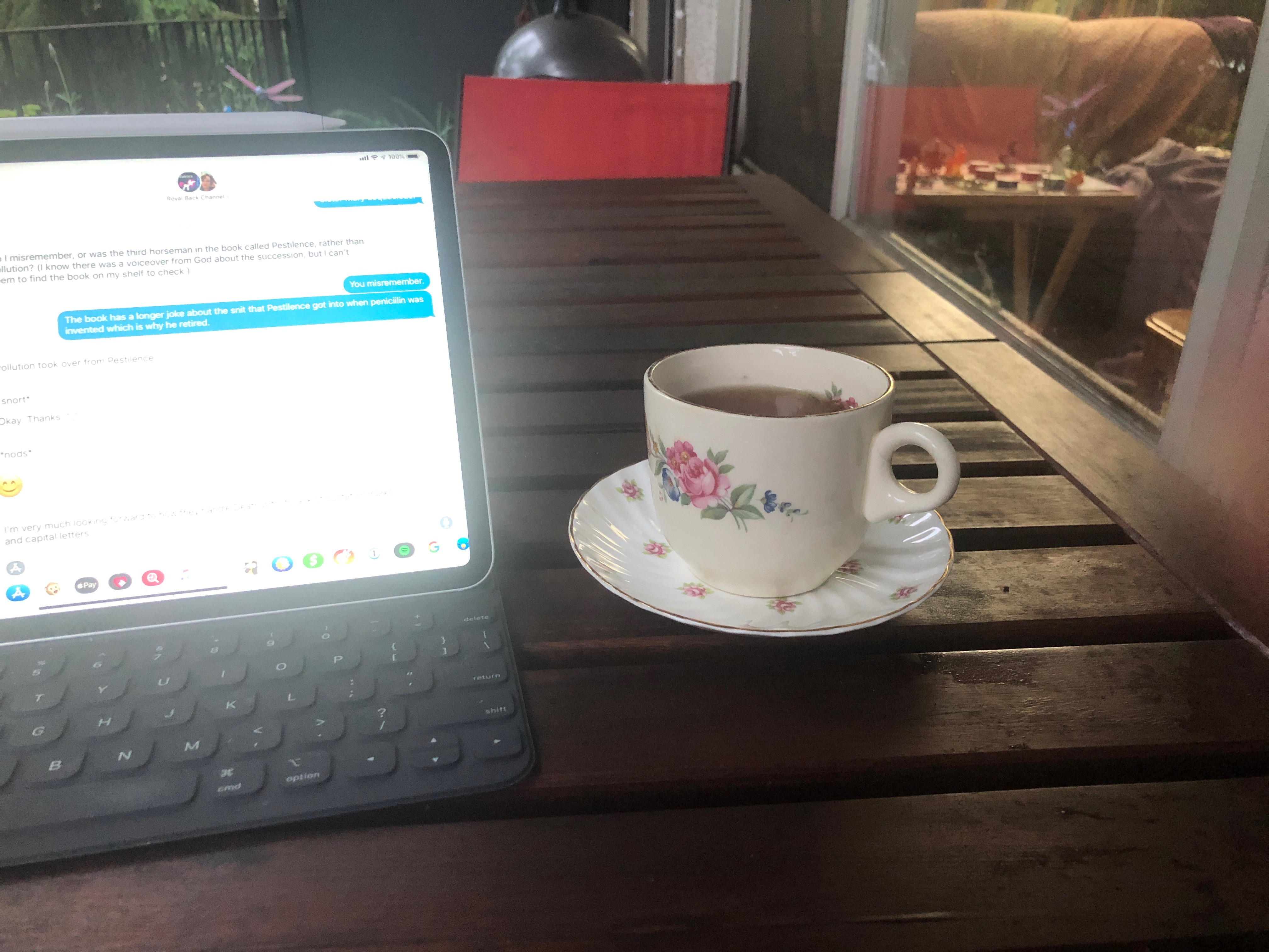 Since I bought the infuser, I have developed a new Sunday routine (that sometimes also happens on Saturday): rather than grinding coffee beans and making a pot of coffee, now I heat a couple of quarts of water to boiling, select one of my loose teas, make a pot of tea, and then get out one of the bone china teacups and use it to drink the tea over the course of the day. I usually wind up making a second pot because 4-5 cups of tea don’t contain quite enough caffeine to cover my current addiction.
