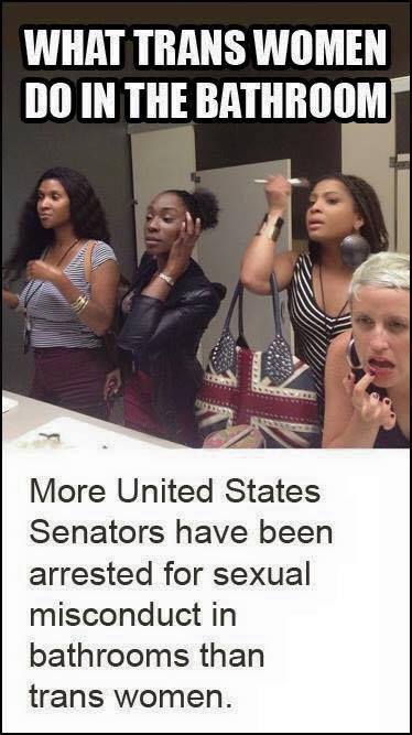 Regardless of what you think of Dan, this time he is definitely right on this one. The anti-trans bigots are using exactly the same arguments they have used against queer people before to justify denying us marriage rights, to justify sodomy laws, and so on. They claim we are monsters and predators and a threat to children. They raise false alarms and generate panic over things that have never actually happened. And yes, they are winning some battles. North Caroline is one place they have won.
