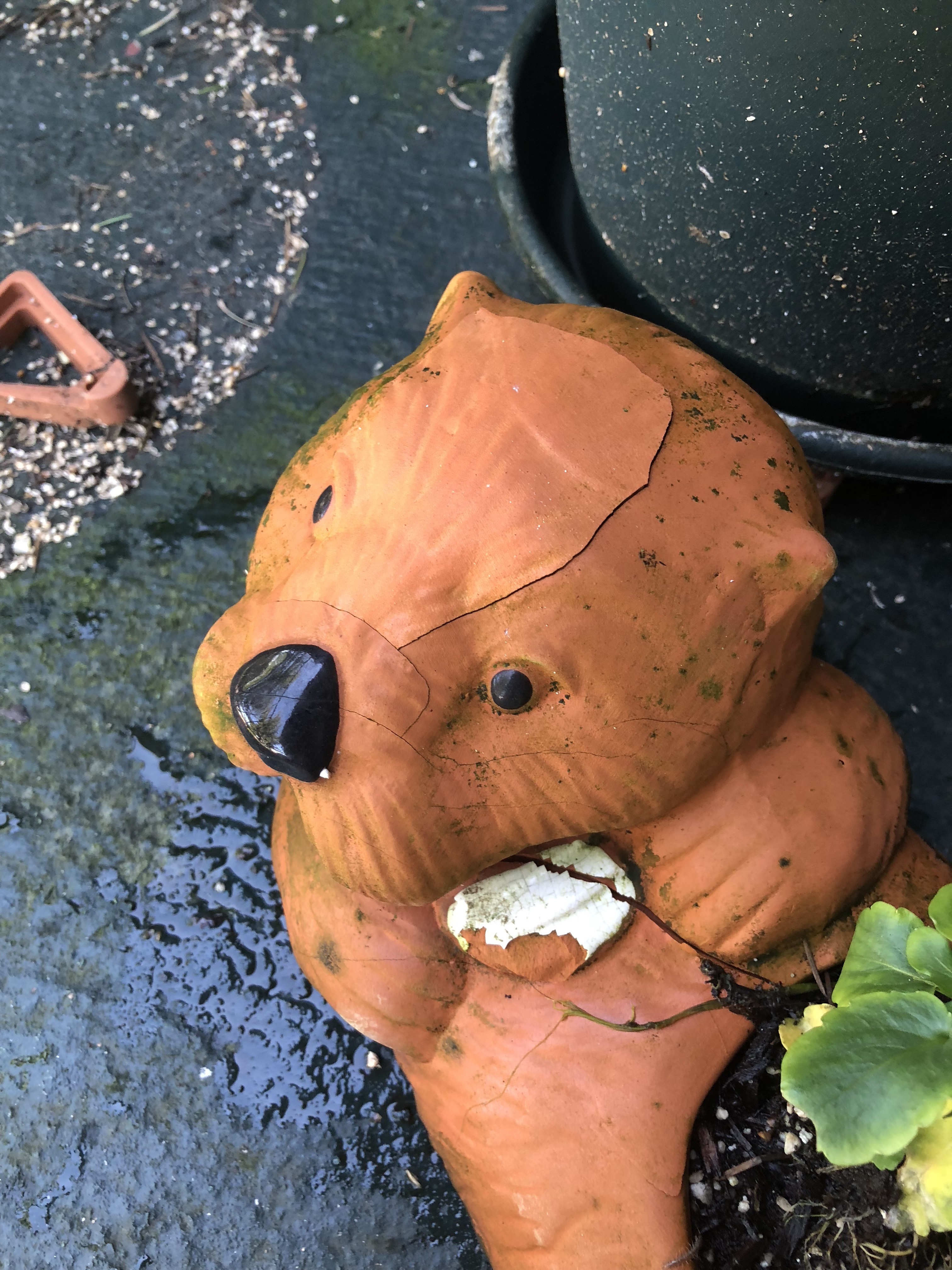 Our poor otter planter cracked and had large chunks of terra cotta break off.